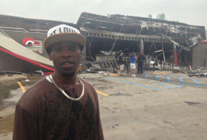 One of the most frequently quoted and photographed Ferguson protesters was charged Saturday with setting fire to a Berkeley convenience store last week.