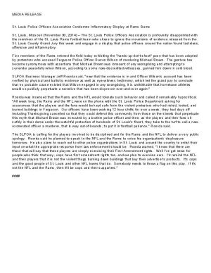 The St. Louis Police Officers Association has called on the NFL to publicly apologize and discipline the five Rams players who stood with their hands raised before Sunday's game. Roorda was set to meet with the Rams Monday afternoon to discuss the issue.