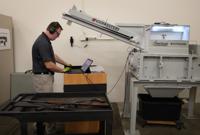 Scott Reed, vice president of Gunbusters, prepares to run a gun through pulverizing machine at the company's headquarters in Chesterfield on Wednesday, May 31, 2017. Photo by David Carson, dcarson@post-dispatch.com
